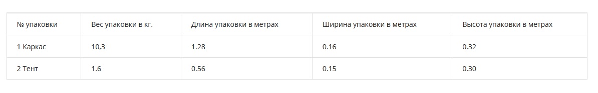 • Тент: ткань oxford 240D PU 2000 (водостойкость 2000 мм водяного столба).